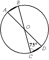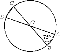 | 9. В окружности с центром в точке О проведены диаметры AD и BC, угол OCD равен 75°. Найдите величину угла OAB. |  |