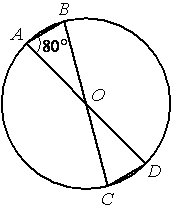 | 2. а)В окружности с центром в точке О проведены диаметры AD и BC, угол OAB равен 80°. Найдите величину угла OCD. б) В окружности с центром в точке О проведены диаметры AD и BC, угол ABO равен 80°. Найдите величину угла ODC. в) В окружности с центром в точке О проведены диаметры AD и BC, угол OCD равен 80°. Найдите величину угла OAB. |  |