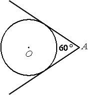 О. Найдите радиус окружности, если угол между касательными равен 60°, а расстояние от точки