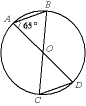 | 4. В окружности с центром в точке О проведены диаметры AD и BC, угол OAB равен 65°. Найдите величину угла ОСD. |  |