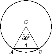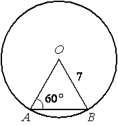 | 7. Центральный угол AOB, равный 60°, опирается на хорду АВ длиной 4. Найдите радиус окружности. |  |