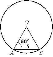| 8. Центральный угол AOB опирается на хорду АВ длиной 5. При этом угол ОАВ равен 60°. Найдите радиус окружности. |  |