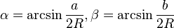 Угол может также найден без П и R. Треугольник делится медианой пополам, и в полученных 2-х равных прямоугольных треугольниках вычисляется углы: