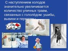 способствовать формированию знаний об опасных факторах гололёда и последствиях для человека;