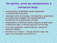 Не наваливаться всем телом на тонкую кромку льда, так как под тяжестью тела он будет обламываться.