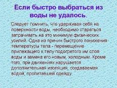 Находясь на плаву, следует голову держать как можно выше над водой (известно, что более 50% всех теплопотерь организма приходится на ее долю).