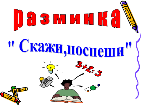 Слайд 3 | 2 конкурс. Разминка «Скажи, поспеши» Условие конкурса: отвечать надо быстро, вопросы задаются командам поочерёдно. Каждый ответ – это 1 балл.