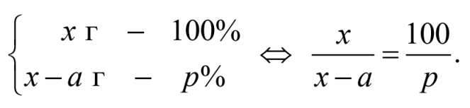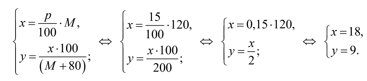 Полученное уравнение является математической моделью задачи. Подставим известные числовые данные (а = 120, р = 84 %), раскроем скобки, слагаемые, содержащие неизвестную, перенесем в левую часть уравнения и решим его: