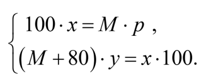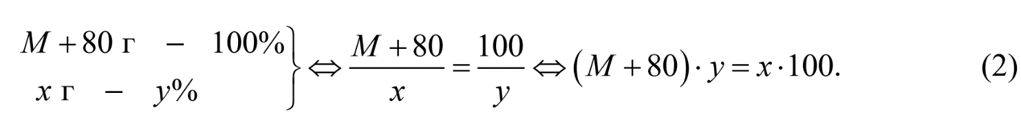 Теперь, зная массу нового раствора (М+80) и количество соли (х), составляем уравнение для нахождения массовой доли соли: