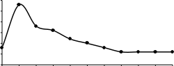Построим прямоугольную систему координат. По горизонтальной оси будем откладывать значения времени, а по вертикальной – значения температуры. Отметим на координатной плоскости точки, координатами которых являются числа из таблицы. Всего получается 10 точек. Соединим их плавной линией, в результате получим график температуры.
