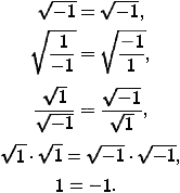 Рассмотрим несколько примеров алгебраических софизмов, в которых ошибки намеренно скрытые в уравнениях и числовых выражениях.