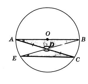 Пусть в окружности приведен диаметр АВ. Через точку В проведем любую хорду ВЕ, не проходящую через центр, затем через середину этой хорды D и точку А проведем новую хорду АС. Наконец, точки Е и С соединим отрезком прямой. Рассмотрим ∆АВD и ∆ЕDС.