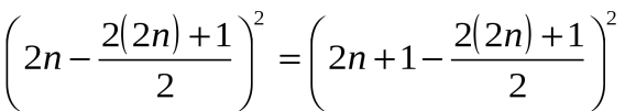 , или 2n=2n+1, что означает равенство чётного числа нечётному. Однако из равенства квадратов не следует равенство величин.