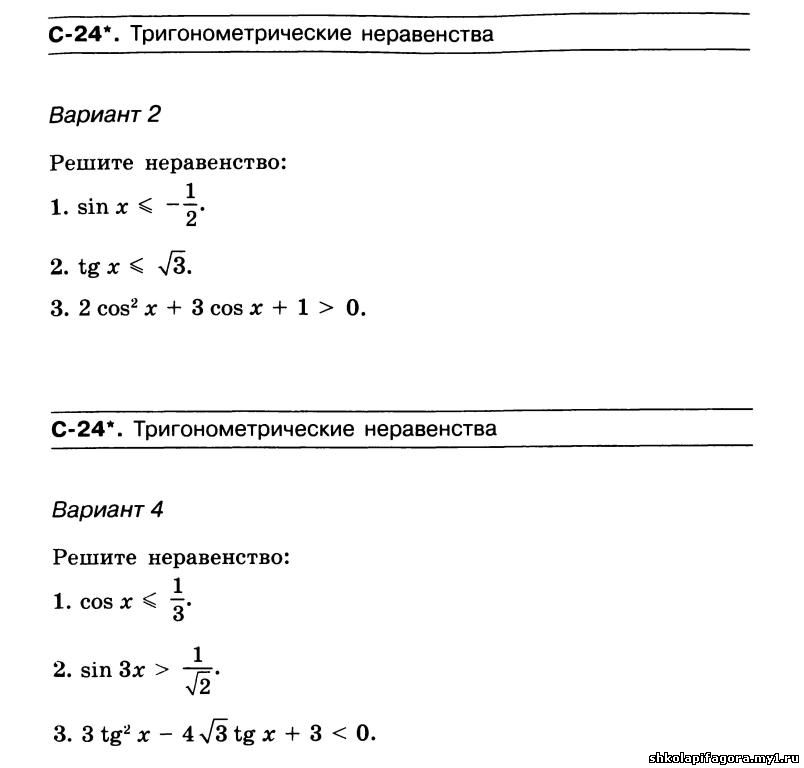 | Контрольная работа по математике за 1 полугодие 11 класс Вариант 2
