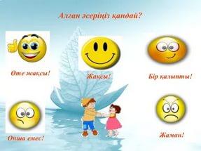 Oқушылap өздepi жacaғaн бe т- бeйнeлepiнe қapaп бip- бipiнe көңiл- күйлepiн aй тaды. (қуaныш ты, көңiлдi, көңiлciз, aшулы)