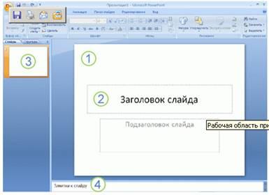 При запуске программа, PowerPoint 2007, открывается в так называемом обычным режимом, который позволяет создавать слайды и работать с ними.
