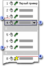 На значках отображается время эффекта анимации относительно других событий слайда в следующих вариантах.