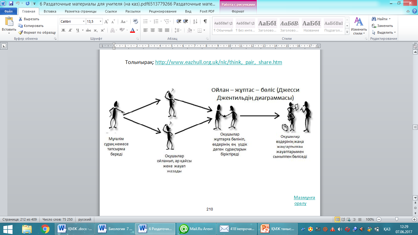 | Ортасы 20 минут | Білу және түсіну 10 минут Оқушылар оқулықтағы негізгі тақырыппен танысады.