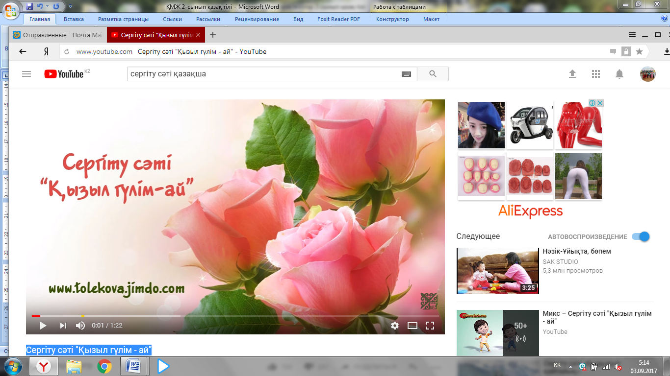 | Сергіту сәті 2 минут | Сергіту сәті "Қызыл гүлім - ай"