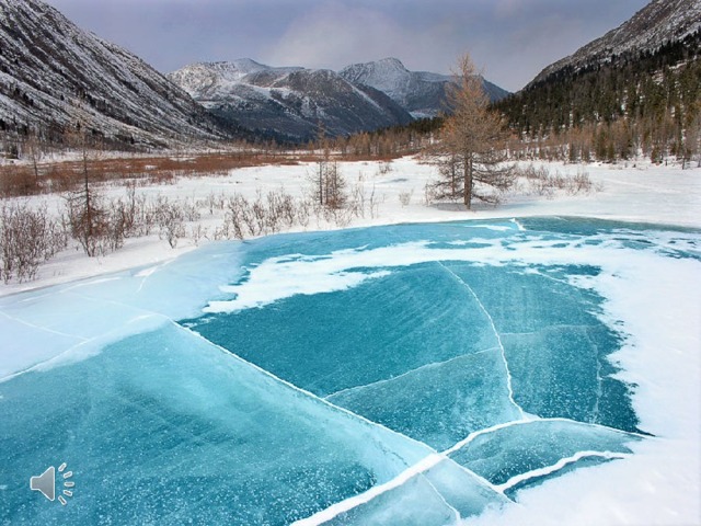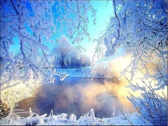 Закройте глаза и представьте, как выглядит река зимой.(Она замерзла, покрыта льдом, на берегах нет никаких растений и т.д.)