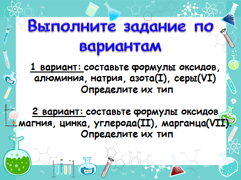 Молодцы! Правильно - оксиды. Это тема сегодняшнего урока. Запишите, пожалуйста, ее в тетради.