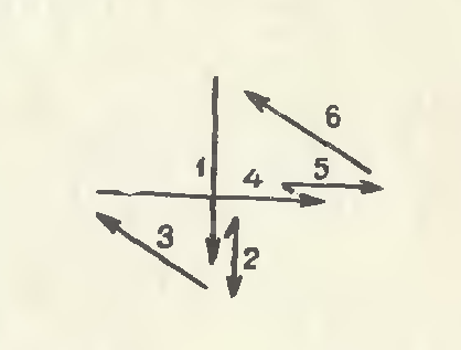 Следовательно, в этой схеме самые яркие, активные доли – 1 и 4, самые слабые – 2 и 5, слабые, но несущие роль замаха, а поэтому и большие по амплитуде – 3 и 6.
