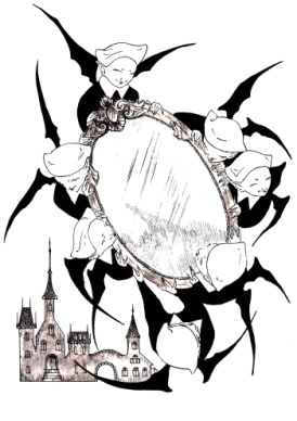 | «…но вдруг зеркало так перекосилось и задрожало, что вырвалось у них из рук, полетело на землю и разбилось вдребезги». |