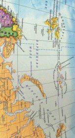 Задание 2. Замок Снежной королевы находится на острове. Разгадаете кроссворд, и вы узнаете название острова, на котором находился замок Снежной Королевы (слово по горизонтали). На части карты найдите этот остров, обведите его красным цветом. Вырежьте кроссворд и карту, наклейте их на газету.