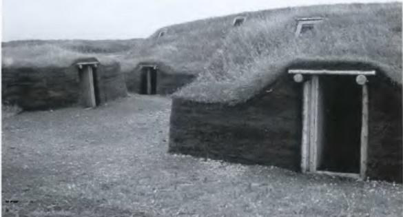 Реконструкция дерновых хижин викингов в л’Анс-о-Медоуз.