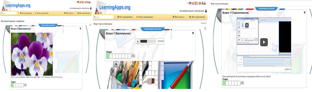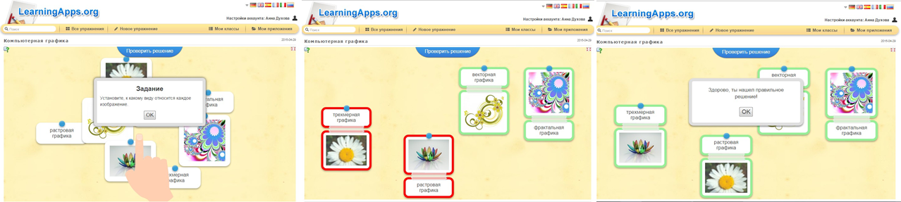 На втором этапе учащимся предлагаю работать в приложении LearningApps.org, предназначенном для обучения с помощью интерактивных заданий.