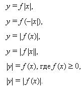 Графики некоторых простейших функций, заданных явно и неявно, аналитическое выражение которых содержит знак модуля. Графики функций, аналитическое выражение которых содержит знак абсолютной величины в олимпиадных заданиях. 4. Уравнения, содержащие абсолютные величины (13 ч). Основные методы решения уравнений с модулем. Раскрытие модуля по определению, переход от исходного уравнения к равносильной системе, возведение в квадрат обеих частей уравнения, метод интервалов, графический метод, использование свойств абсолютной величины. Уравнения вида