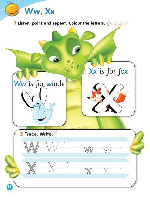 | Practice: (D) Teacher gives instructions to trace the letters. Then teacher shows pictures of animals and ask question: Are there three fox? If there are three foxes. They answer: Yes, there are/ No theren’t | Activity book pp14-15