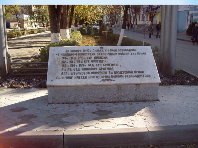 На въезде в г.Сальск воздвигнут памятник 116 Донской казачьей кавалерийской дивизии, впоследствии переименованной в 12 Гвардейскую дивизию, которая прошла славный боевой путь от берегов Маныча до Будапешта.