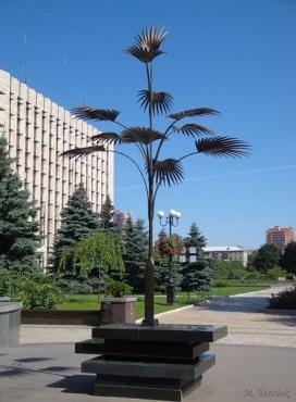 - Стальная пальма изготовлена кузнецом Алексеем Ивановичем Мерцаловым с помощником без сварки и соединений из целого куска рельсы в конце XIX века. Высота пальмы составляет 3 метра 53 сантиметра. Пальма весит 325 килограммов. На её создание у Мерцалова ушло три недели.