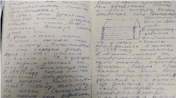Жили они в землянке, а позже семью переселили в барак – он назывался «учительский дом», там жили первые учителя. Моя прабабушка Сусанна Алексеевна – была основоположником школы нашего поселка. Сохранились ее записи, где она рассказывала, что первая школа была в виде засыпного барака, одна комната, топилась печь, учились 1,2 классы.