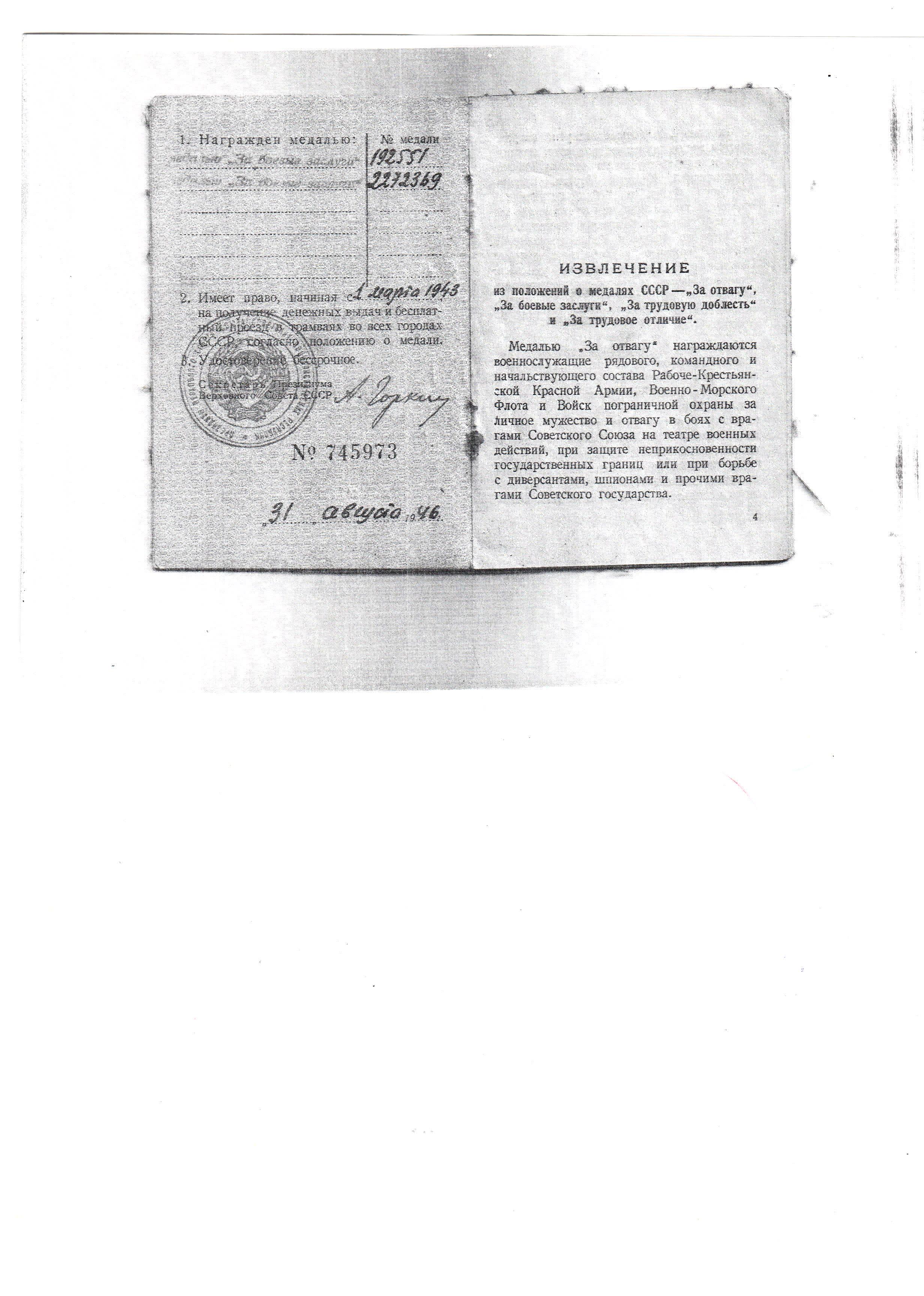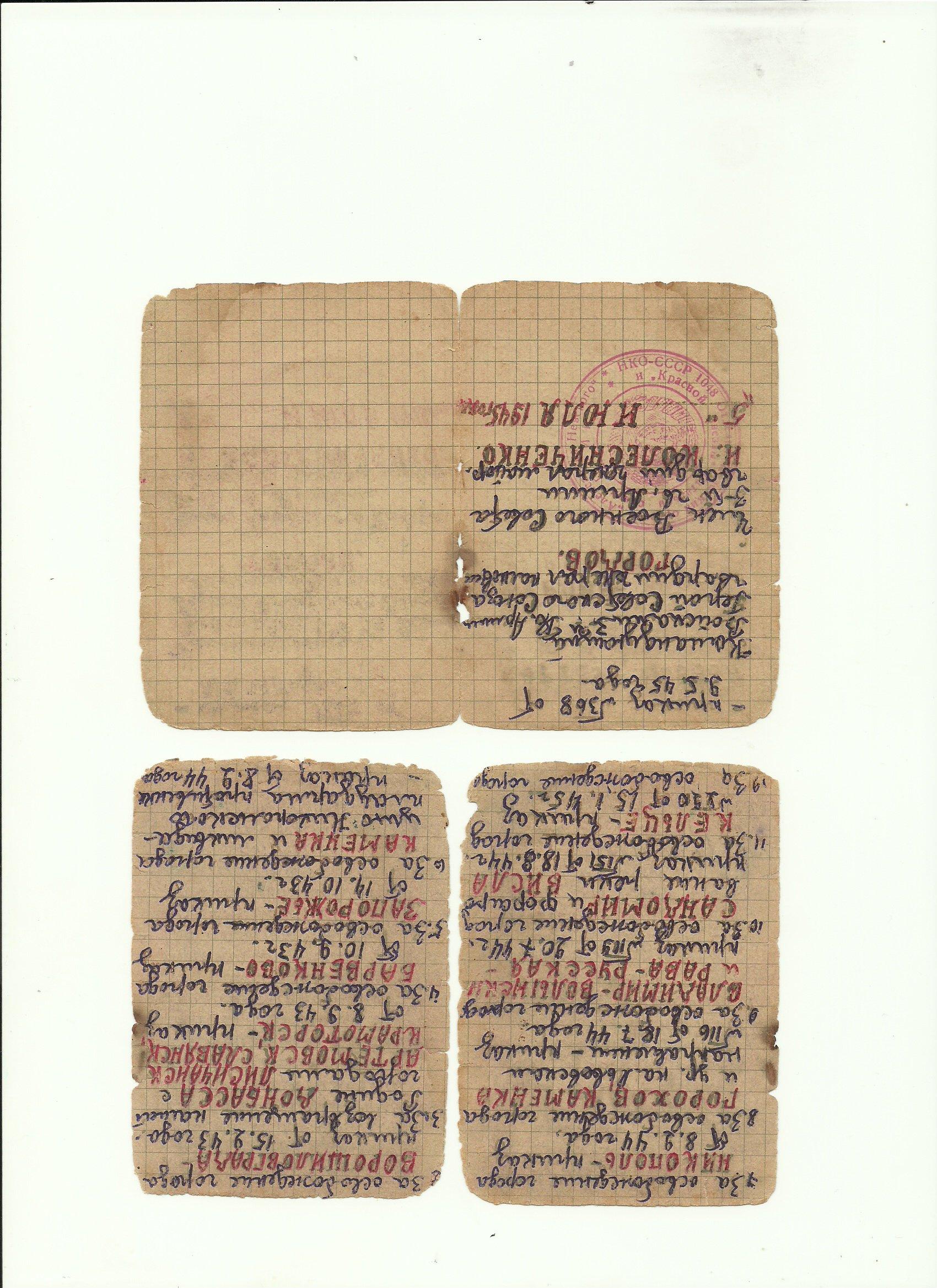 «Боевые товарищи, совместно прошедшие сквозь суровые годы войны, спаянные общими интересами и боевыми задачами, прошедшие большой, тяжёлый и славный путь, овеянный немеркнущей славой – путь от предгорий Кавказа до Берлина и Праги. 23.8.45 г. Снят в Отечественную войну».
