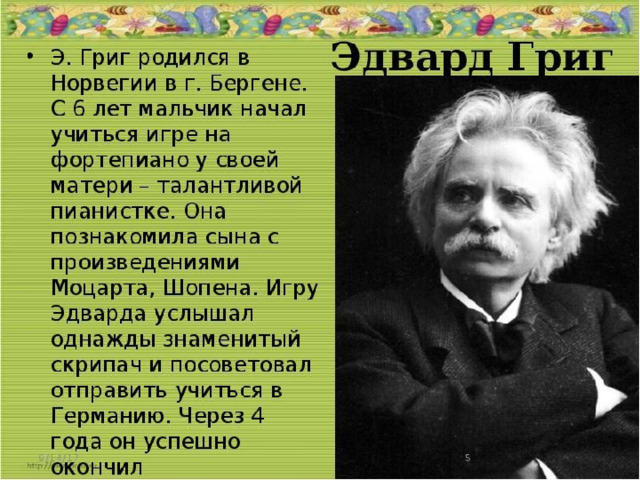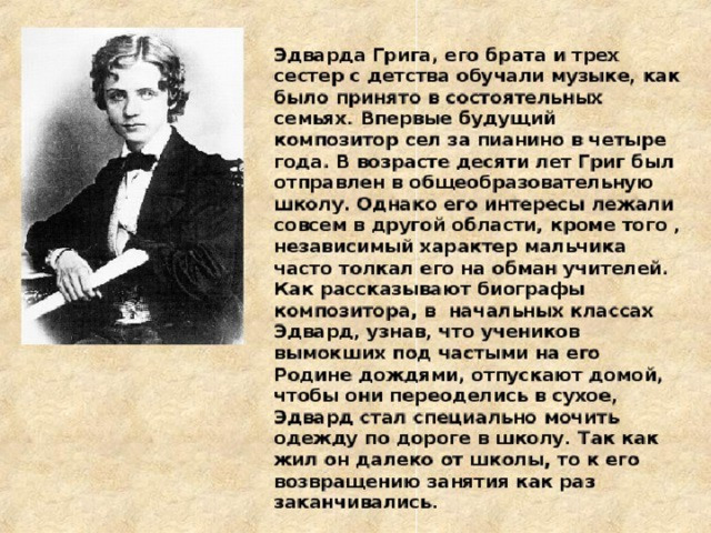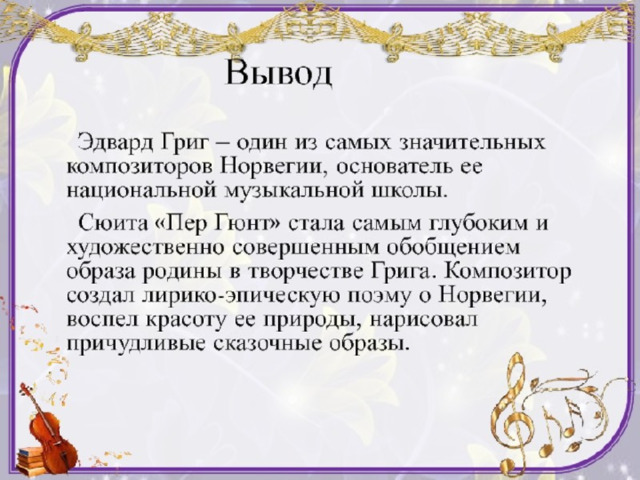Послушай фрагменты из музыки Э. Грига к драме «Пер Гюнт».