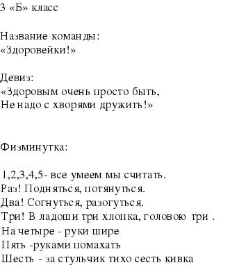 Классы делятся на 3 команды. Для каждой команды выбираются названия, разучиваются девизы, изготовляются эмблемы.