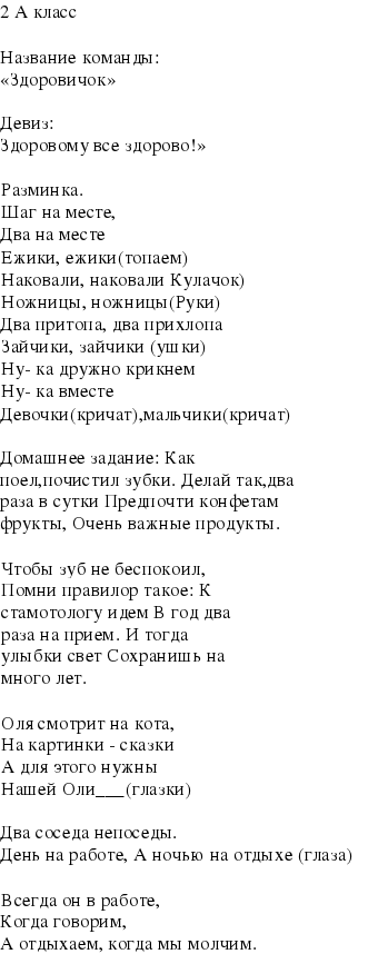 Команды готовят домашнее задание: песни, стихи , сценки о здоровье человека; физминутку из 5-8 упражнений
