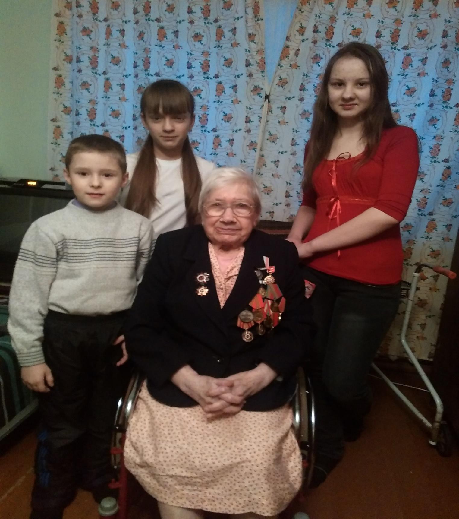 Мы в течение нескольких лет ходим к ней в гости, поздравляя ее с различными праздниками, рассказываем стихи, дарим подарки, сделанные своими руками, беседуем с ней. И к Дню победы мы сделали поздравительную стенгазету, где рассказали ребятам нашей школы о ветеране ВОВ.