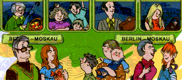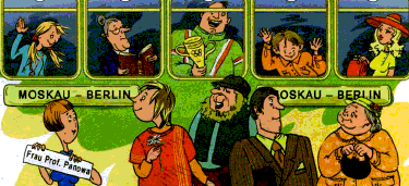 по кругу и поют песню "Wir reisen" на мотив песни "Мы едем, едем, едем ...").