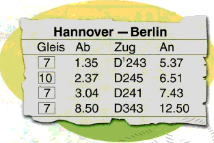 | Zu welcher Zeit fährt der Schnellzug 243 aus Hannover nach Berlin ab? | Der Schnellzug 243 fährt aus Hannover nach Berlin um 1.35 ab. |