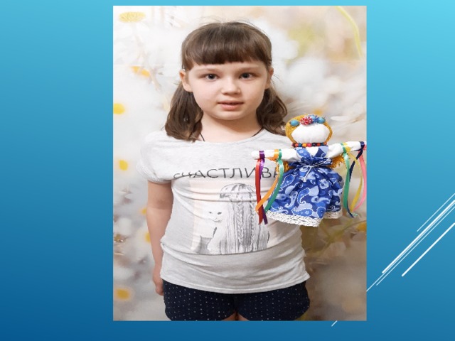 - 6. Наденьте на куклу юбку, платок, повяжите пояс, на руки привяжите тесемки из ткани