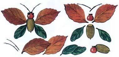 Берём желудь не большого размера отделяем его от шляпки, затем прикрепляем к жёлудю листочки (любого дерева), с помощью пластилина, это будут крылья бабочки. Затем таким же образом прикрепляется плод шиповника и веточки деревьев (это голова и усики).