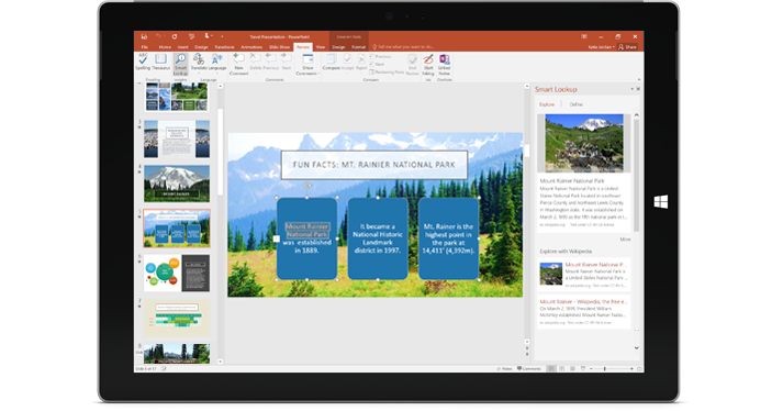 Office moves with you From work to your favorite café, stay connected to what's important—friends, family, and projects across all of your devices. Office apps optimized for touch Use touch for reading, editing, zooming, and navigation. Write notes or make annotations using digital ink. Bring it all together with OneDrive cloud storage Easily save to your cloud storage and switch from one device to the next without missing a beat. Office apps pick up right where you left off, regardless of the device you were using. Perfect with Windows 10 Office 2016 plus Windows 10 is the world's most complete solution for getting things done. Windows Hello: You are the password Windows Hello logs you into your Windows devices* and Office in less than 2 seconds, 3x faster than a password**. Use your camera to recognize your face or try your fingerprint reader – either way Windows Hello recognizes you instantly.