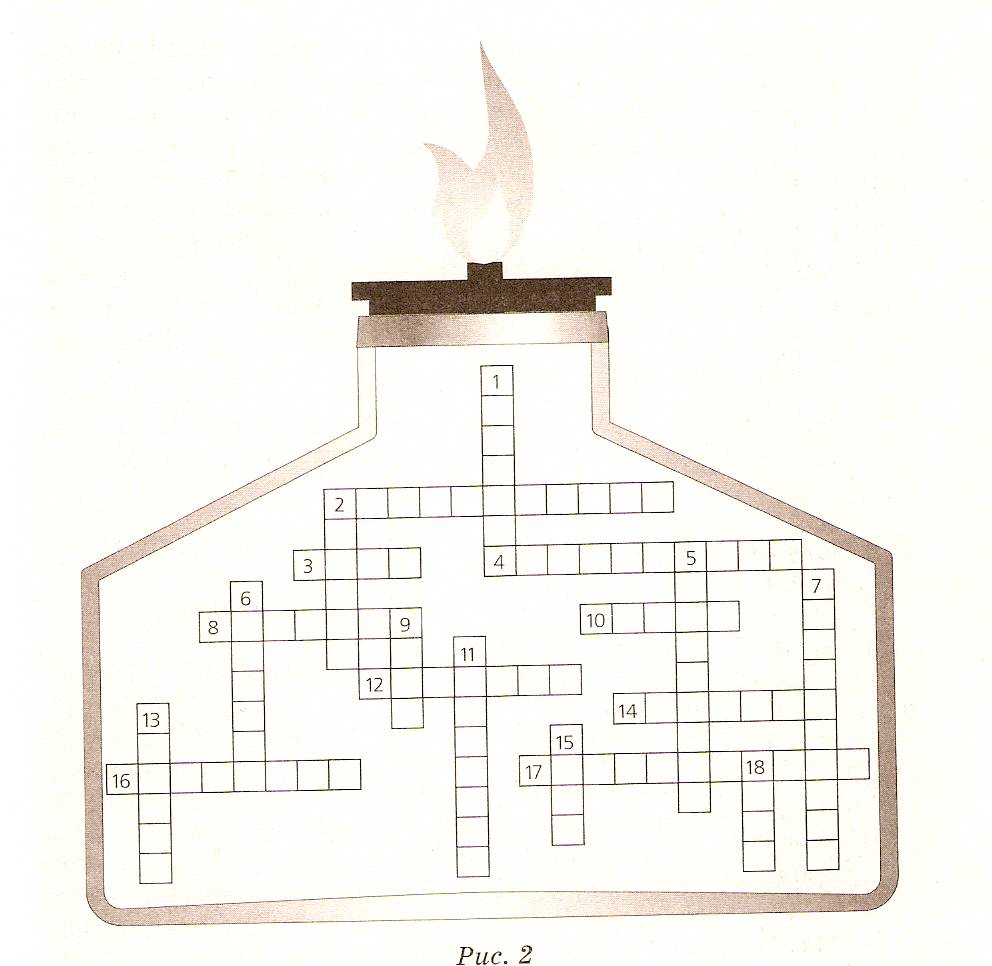 5. Взаимодействие вещества с кислородом. 6. Горючие материалы, используемые для получения теплоты. 7. Явление существования химического элемента в виде нескольких простых веществ. 9. Мельчайшая частица химического элемента, сохраняющая его свойства. 11. Водородное соединение, из которого можно получить кислород. 13. Вещества, состоящие из двух элементов, один из которых кислород. 15. Вещество остающееся после сгорания топлива.