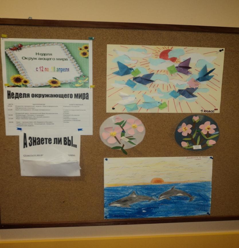 В начальной школе с 12.04. по 18.04.16 года прошла неделя окружающего мира в целях развития у учащихся интереса к урокам «Окружающего мира», повышения образовательного уровня, осуществления экологического воспитания, бережного обращения к природе, создания условий для реализации творческих способностей учащихся, условий для формирования здорового образа жизни, развития умения работать самостоятельно. В классных коллективах проведены мероприятия по плану, викторины, игры – путешествия.