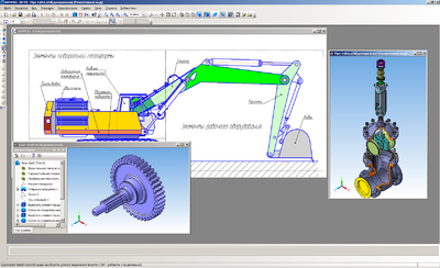 Основные компоненты «Компас-3D» — собственно система трехмерного твердотельного моделирования, универсальная система автоматизированного проектирования КОМПАС-График и модуль проектирования спецификаций.