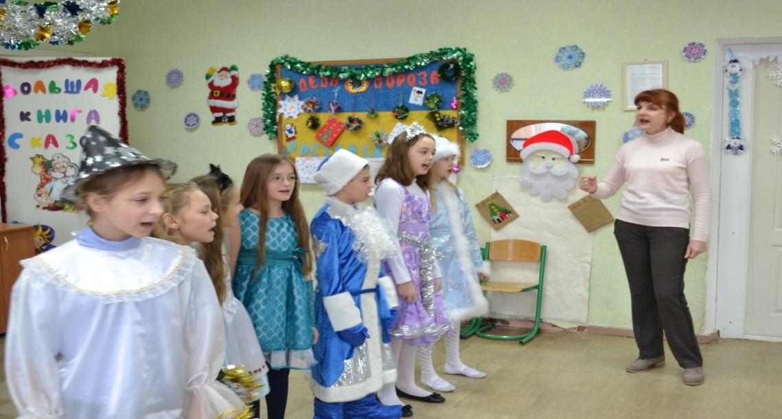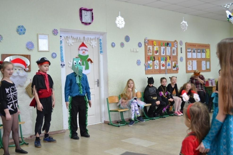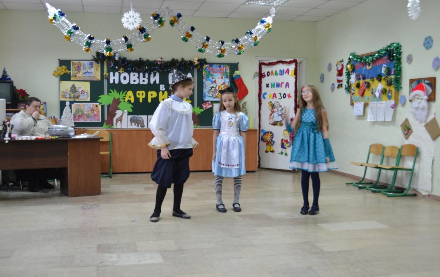 Школьники по желанию выступают для Деда Мороза.