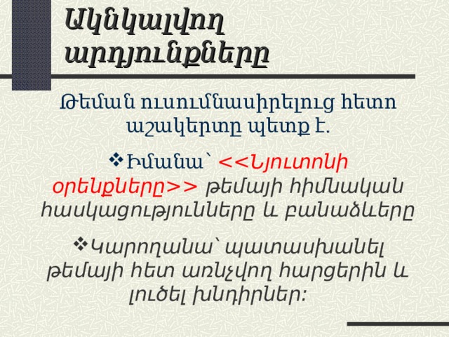 Թեման ուսումնասիրելուց հետո աշակերտը պետք է.